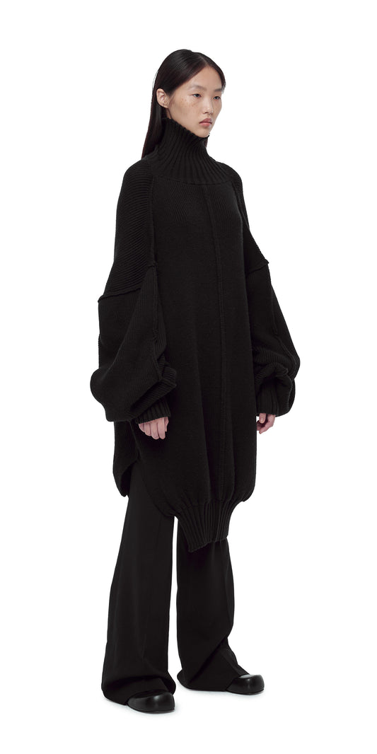 BLACK OVERSIZED KNIT TURTLENECK DRESS