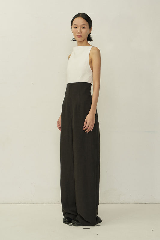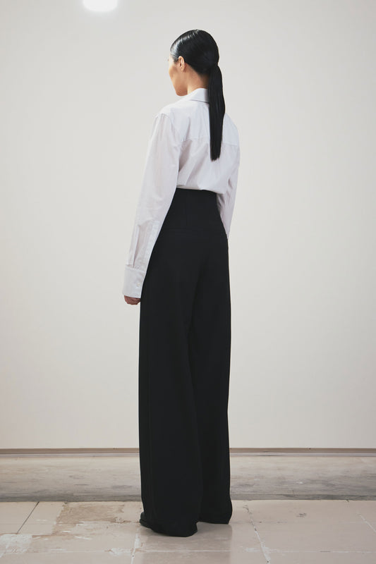 BLACK ZIP HIGH-WAIST WIDE TROUSERS