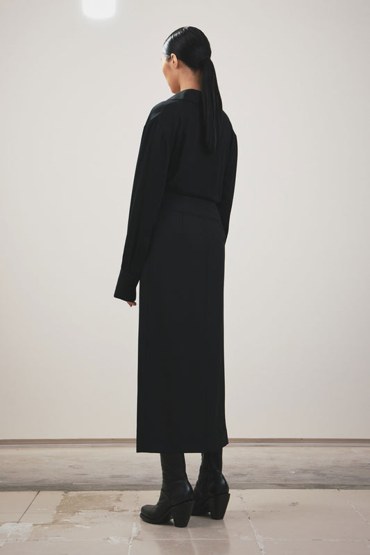 BLACK ZIP HIGH-WAIST PENCIL SKIRT