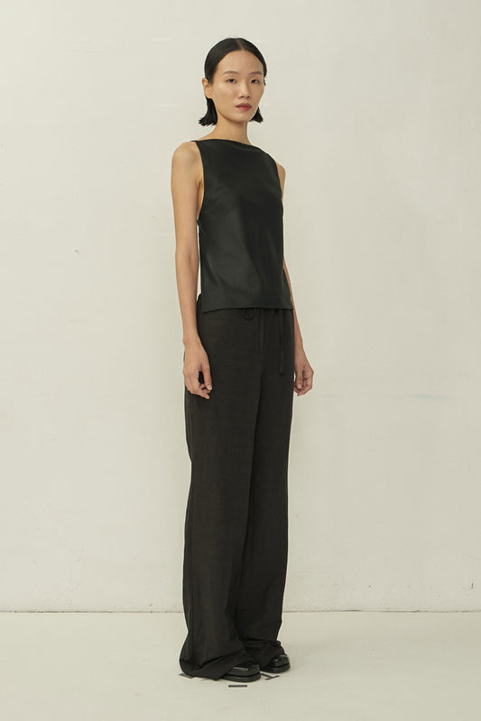 BLACK LOW RISE DRAWSTRING RAW EDGE TROUSERS