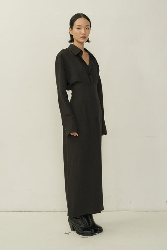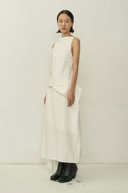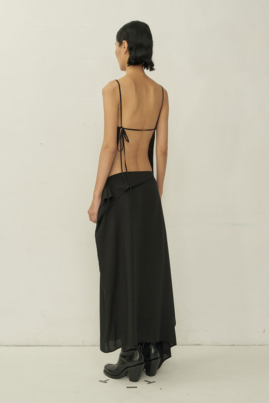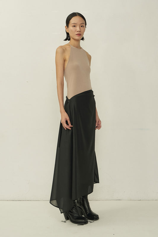 BLACK TENCEL ASYMMETRIC CUTTING SKIRT