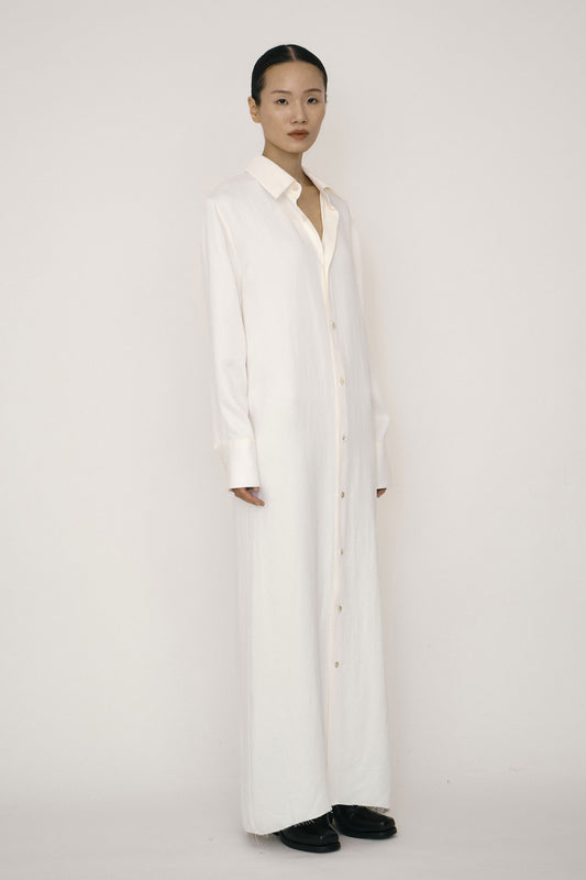 • WHITE SATIN RAW EDGE SHIRT DRESS