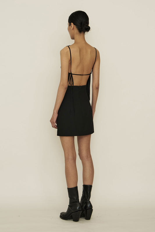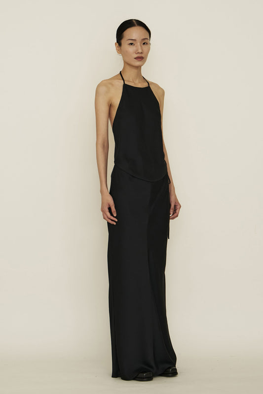 BLACK WOOL BIAS-CUT SQUARE NECK OPEN-BACK TOP