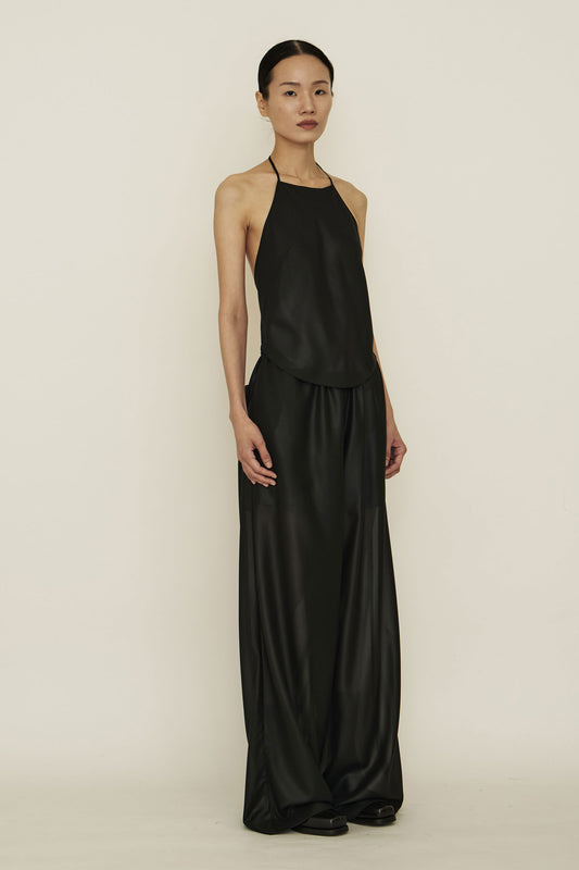 BLACK CHIFFON OPEN-BACK APRON TOP