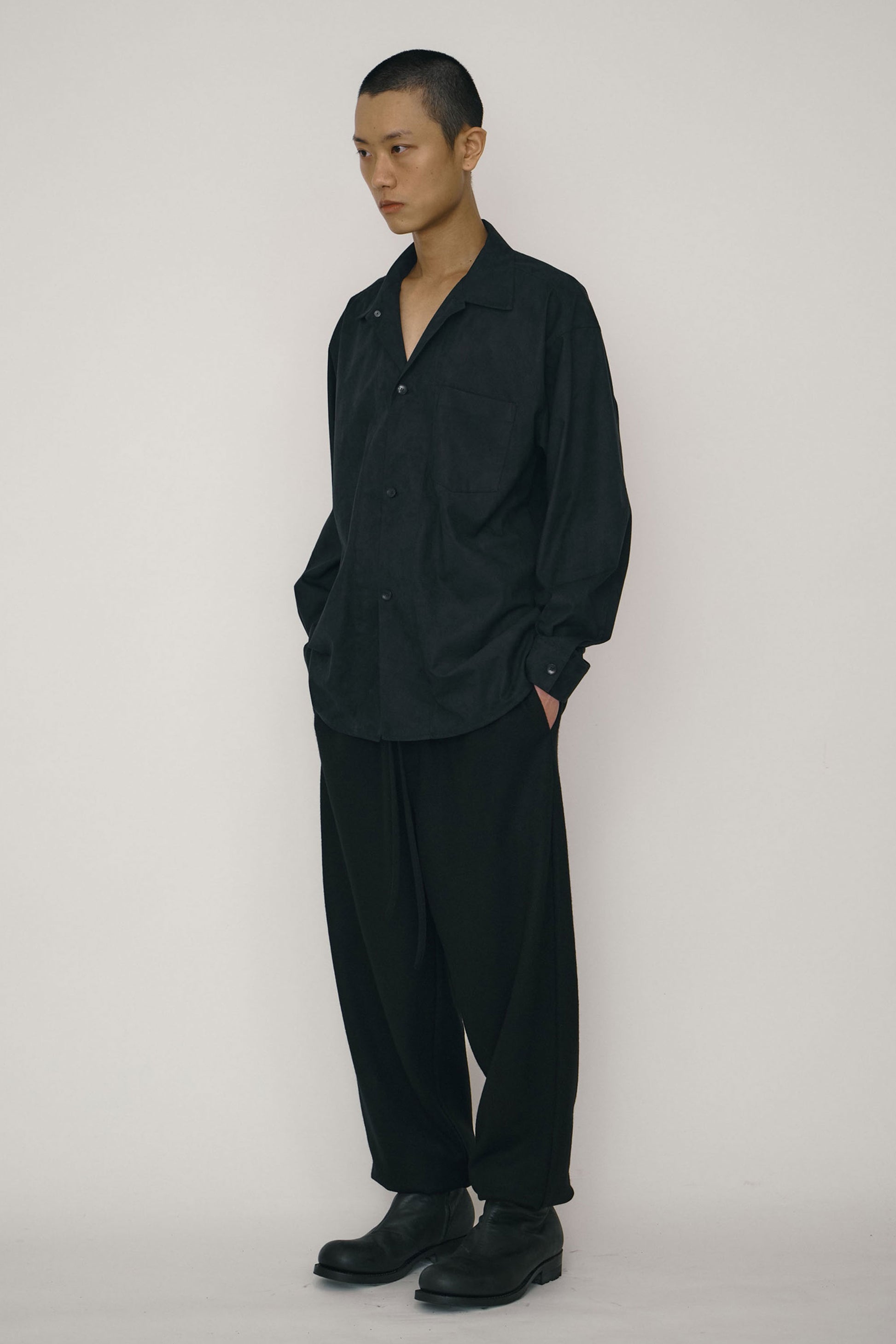 BLACK FAUX-SUEDE LONG-SLEEVE SHIRT JACKET (MADE TO ORDER)