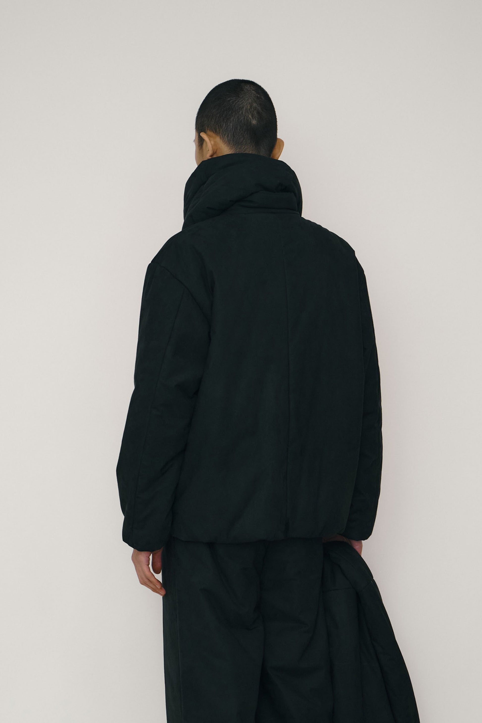 BLACK FAUX-SUEDE PADDED HIGH-NECK JACKET (MADE TO ORDER)