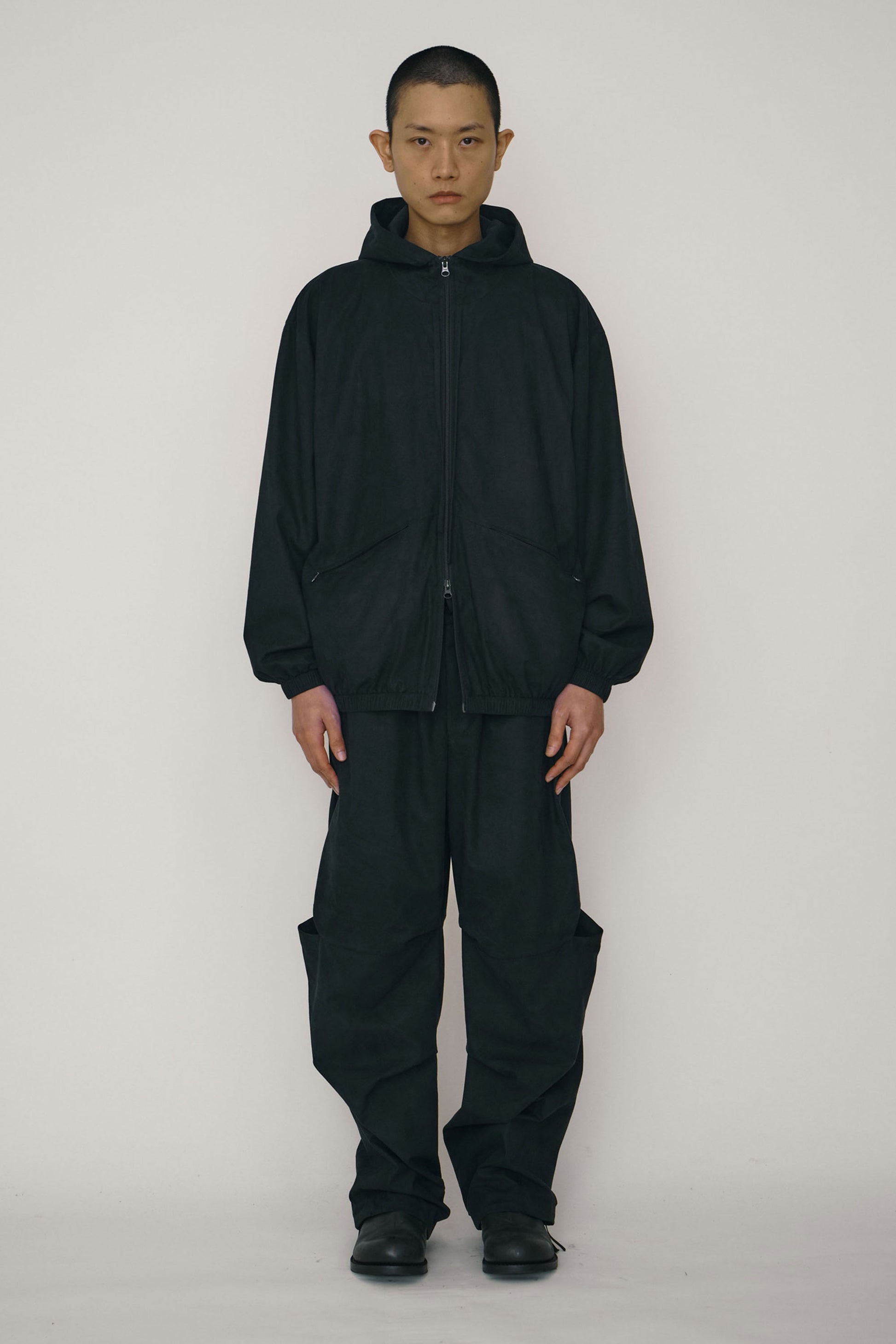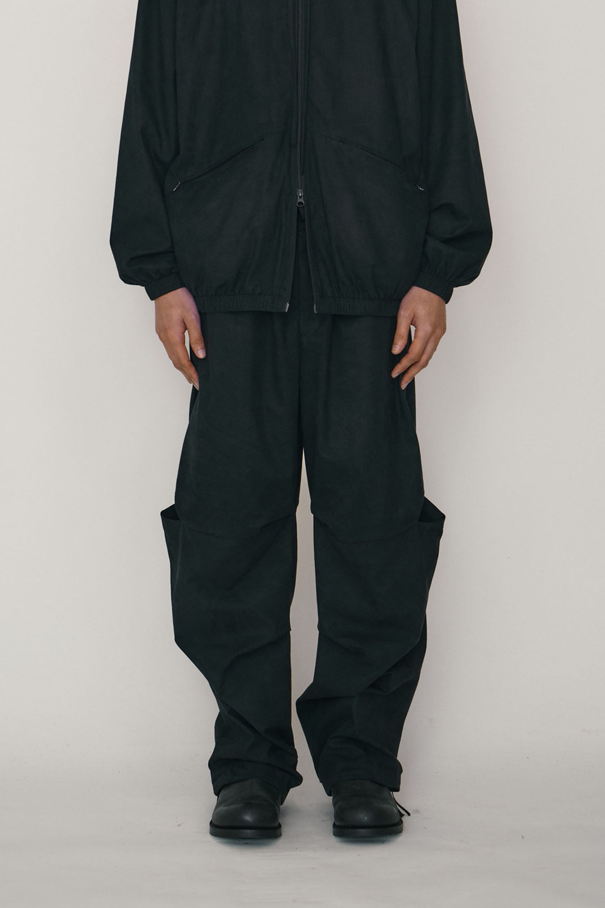 BLACK FAUX-SUEDE TUCK TROUSERS (MADE TO ORDER)