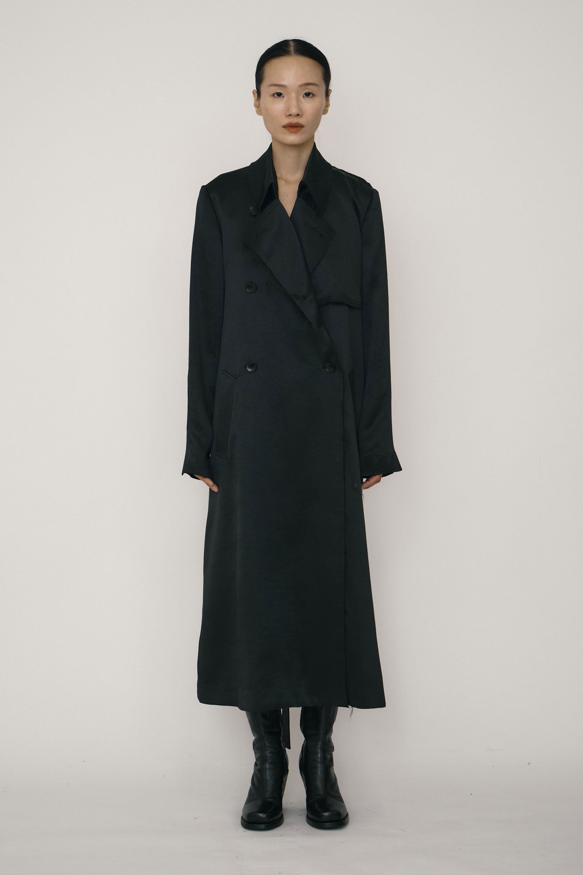 BLACK SATIN RAW EDGE TRENCH COAT (MADE TO ORDER)