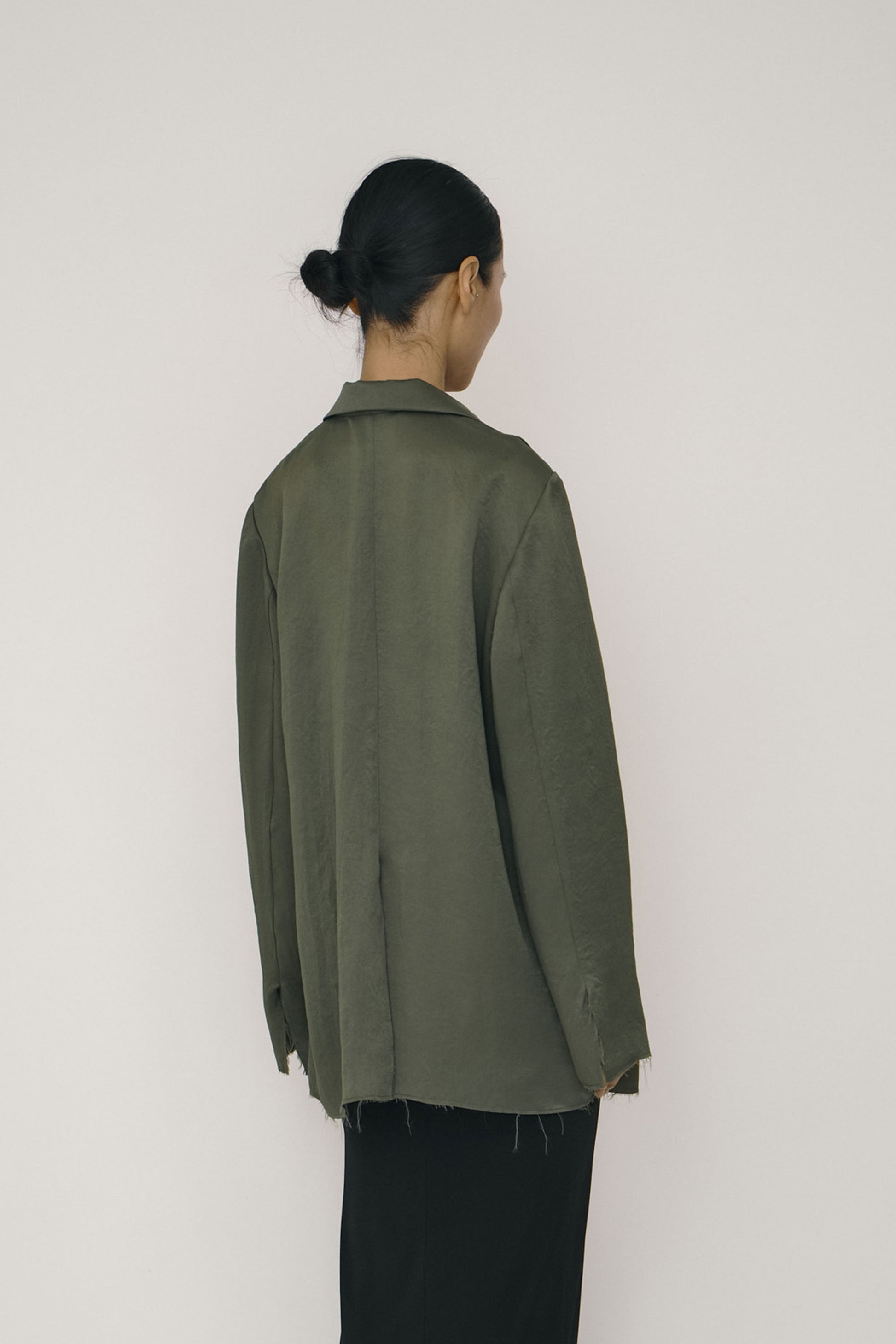 GREEN SATIN RAW EDGE BLAZER SHIRT