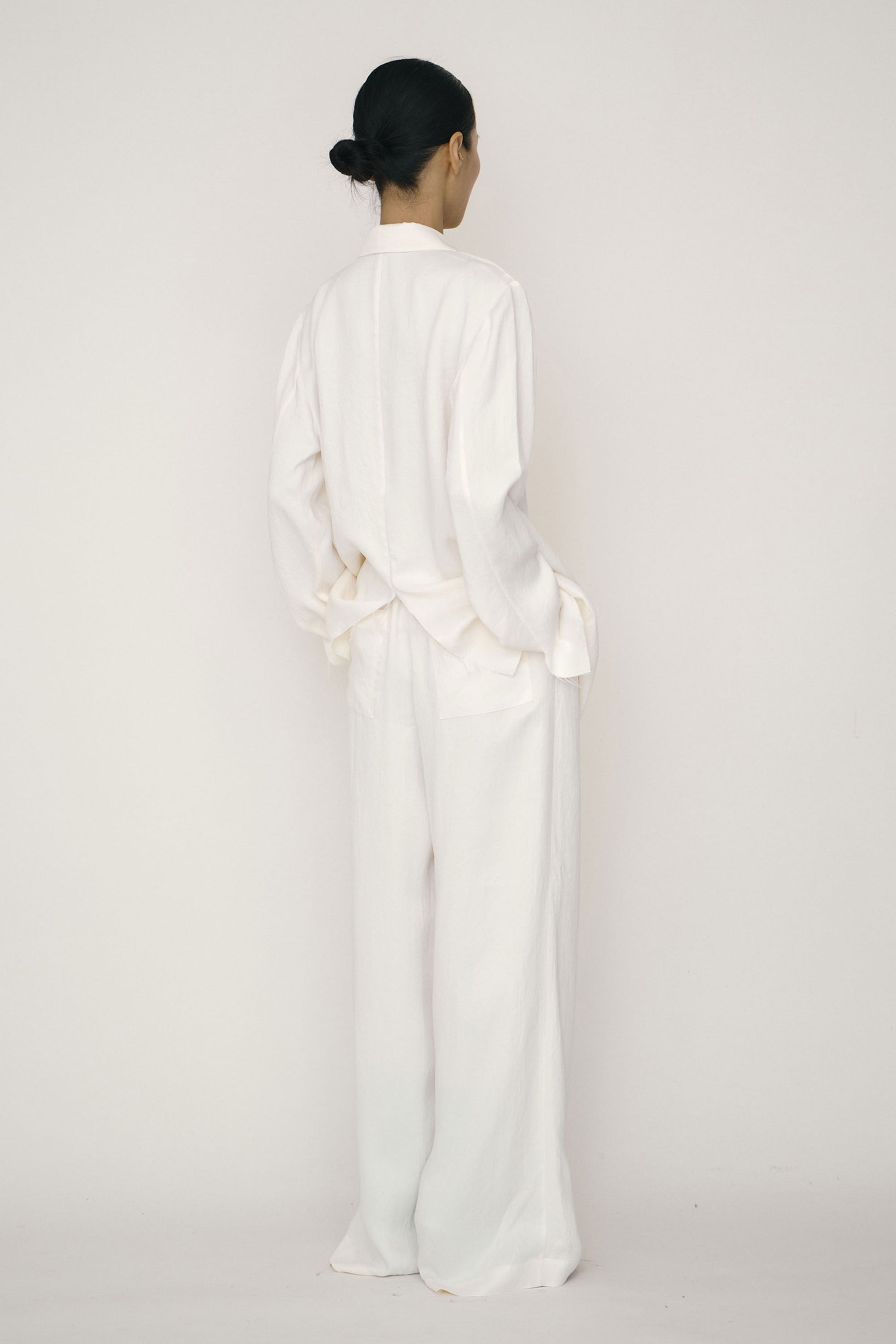 WHITE SATIN RAW EDGE BLAZER SHIRT